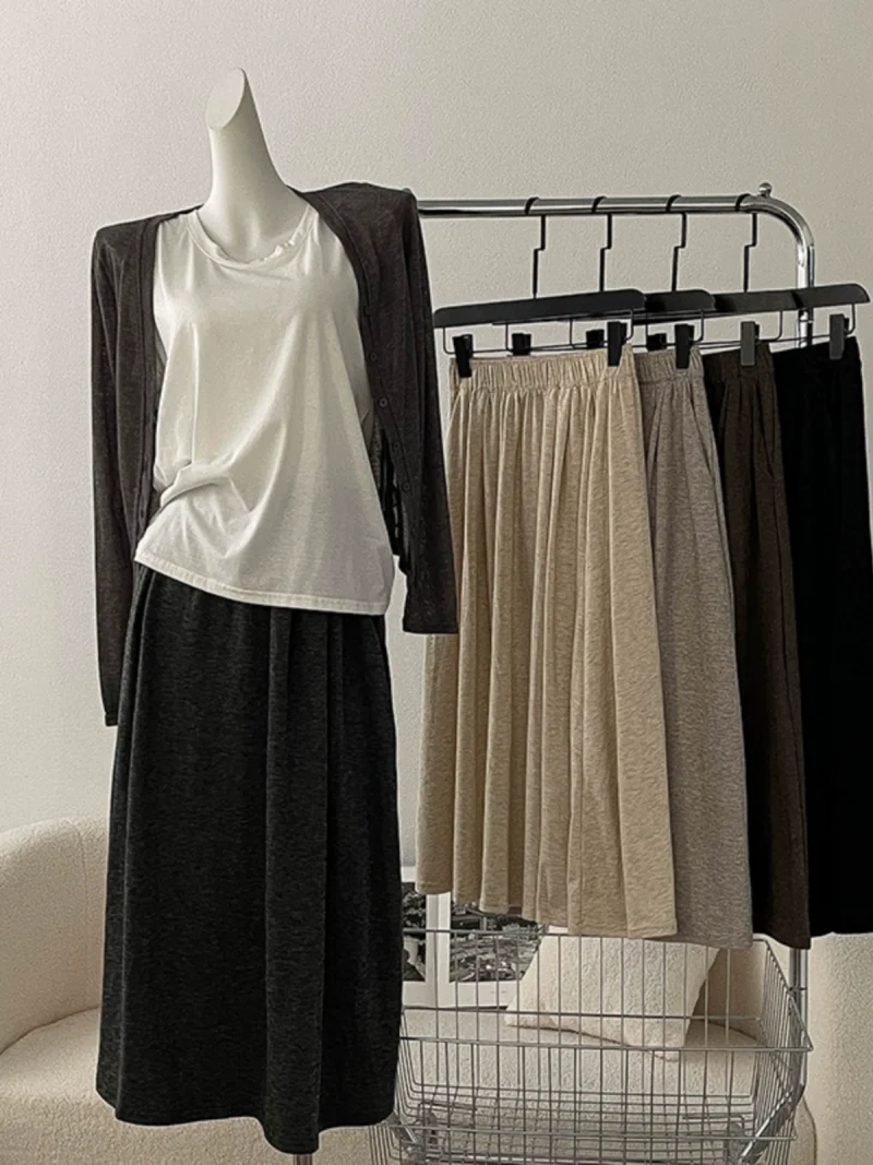Be the first to review “休闲百搭纯色松紧腰半身裙2024秋季新款韩版女装宽松百搭A字长裙”