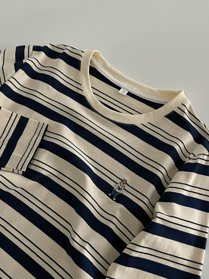 Be the first to review “小熊刺绣减龄条纹T恤2024秋季新款女长袖简约套头洋气长袖上衣潮”