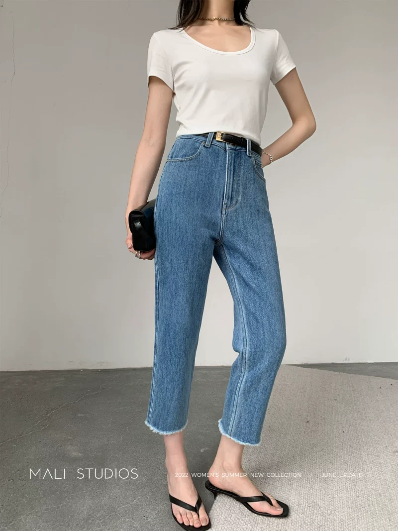 强捻双股纱|时髦百搭高质量水洗新疆长绒棉毛边七分裤