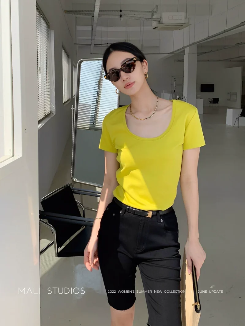 时髦极简后背设计感|50S精梳棉ROW风U领T恤