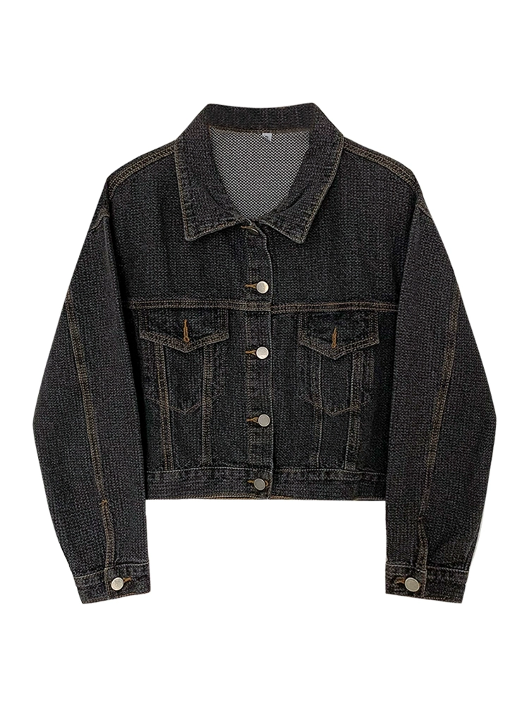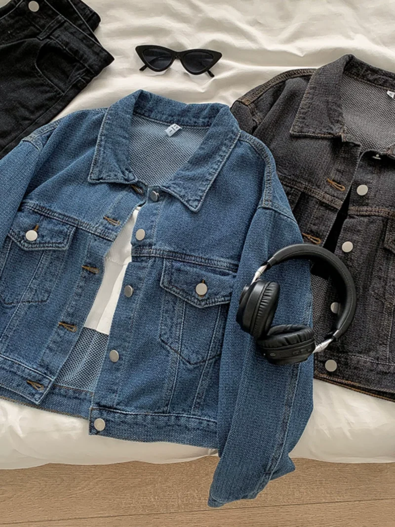 Be the first to review “港味休闲牛仔短外套2024秋季新款女装百搭学生宽松单排扣翻领上衣”