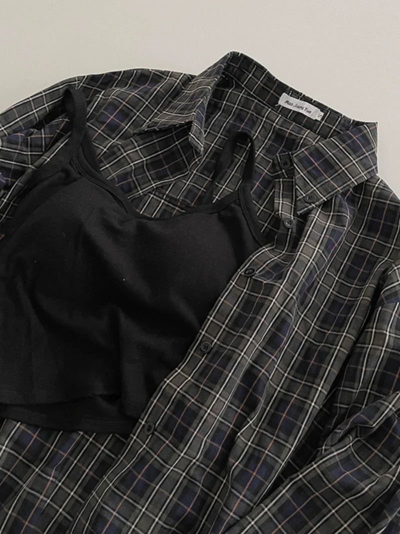 Be the first to review “男友风气质格子时尚衬衫2024秋季新款韩版女百搭休闲纽扣开衫上衣”