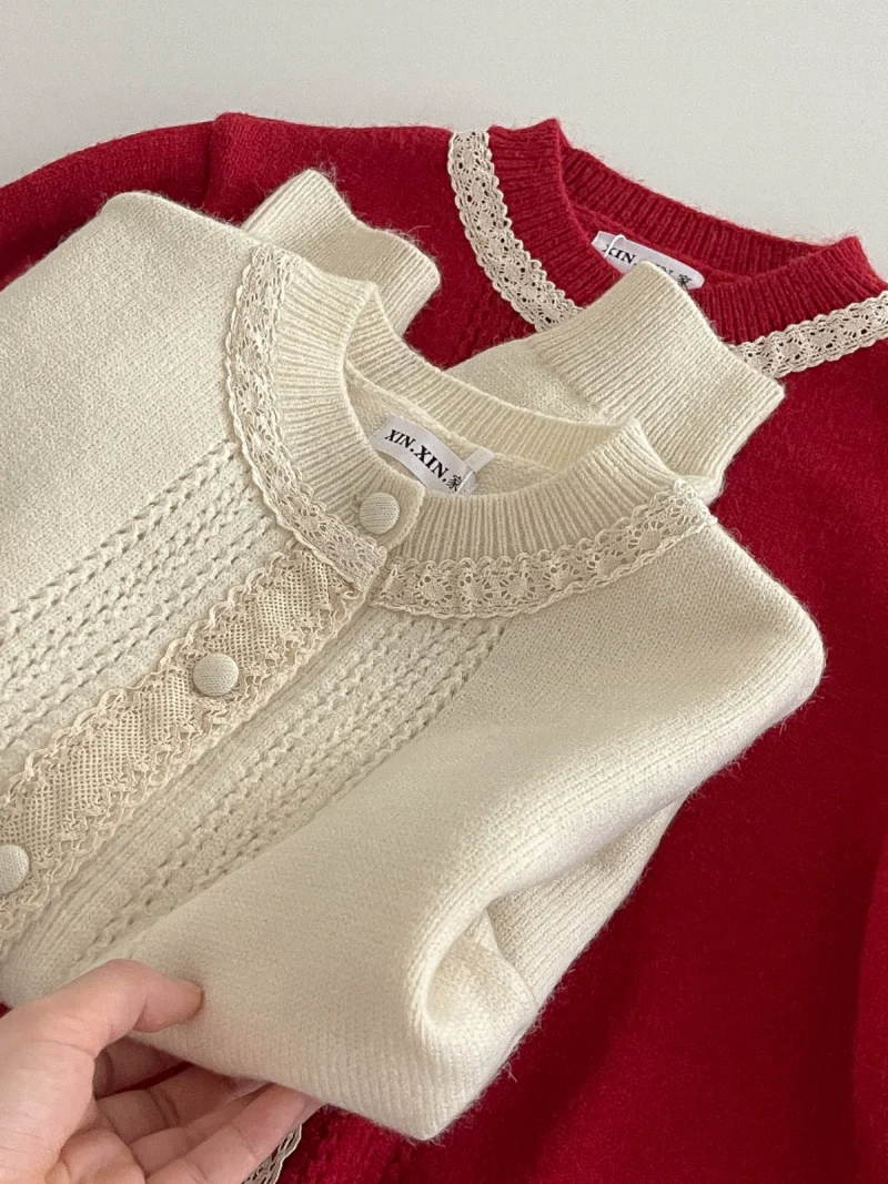 Be the first to review “花边撞色减龄针织毛衣2024秋冬新款韩版女装休闲甜美长袖开衫上衣”