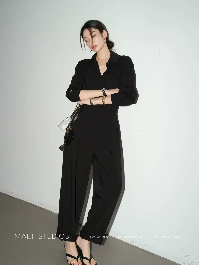 MALI宽松休闲连体裤春秋别致高级感连身裤黑色连衣裤连体套装女