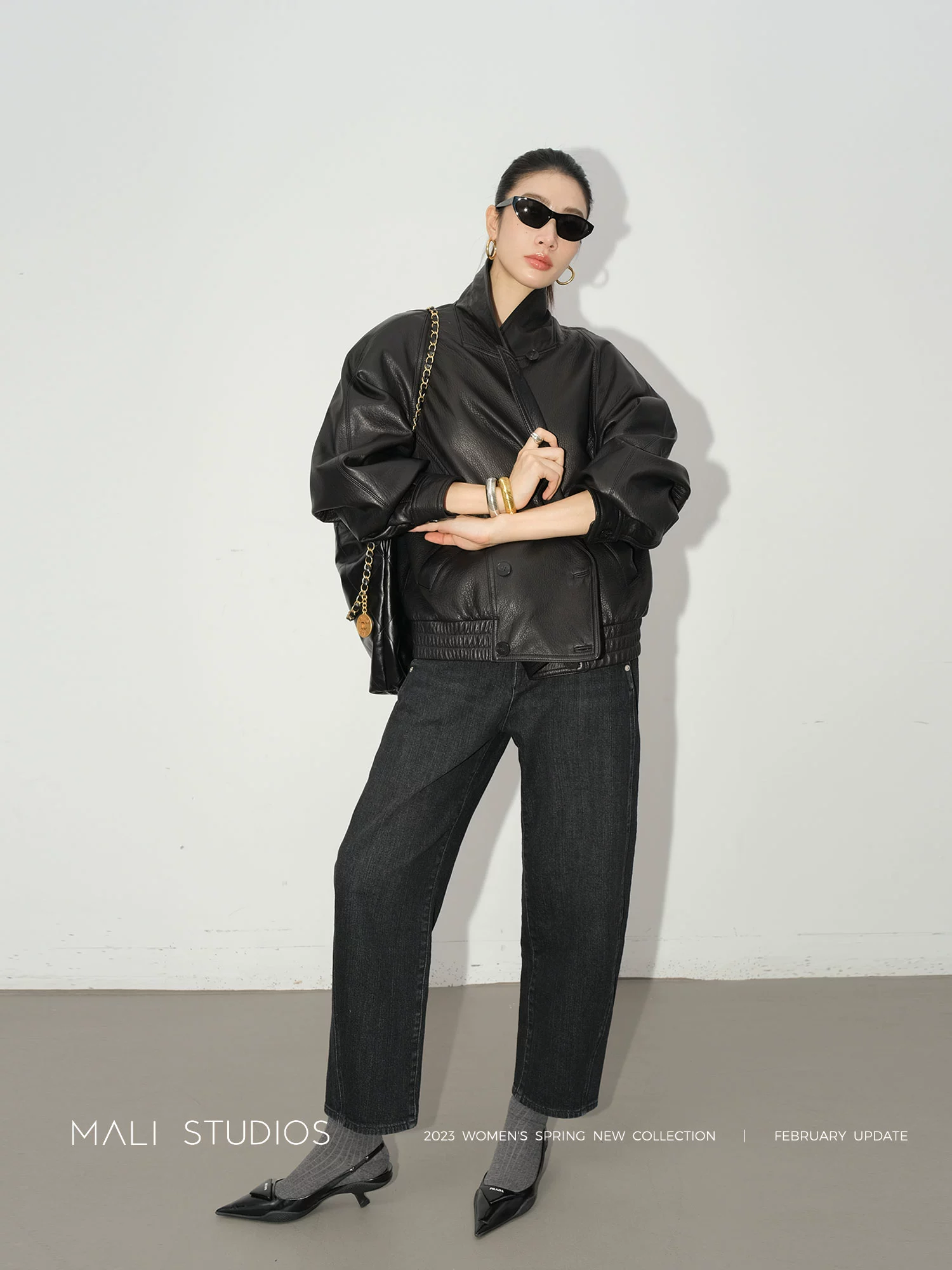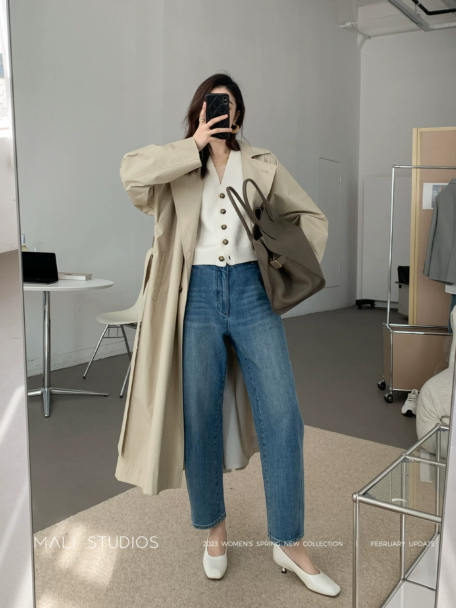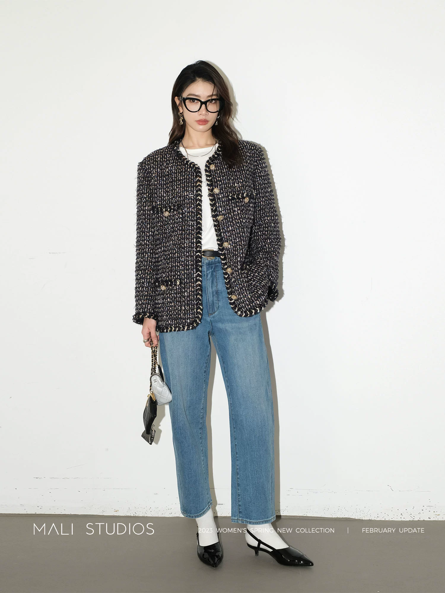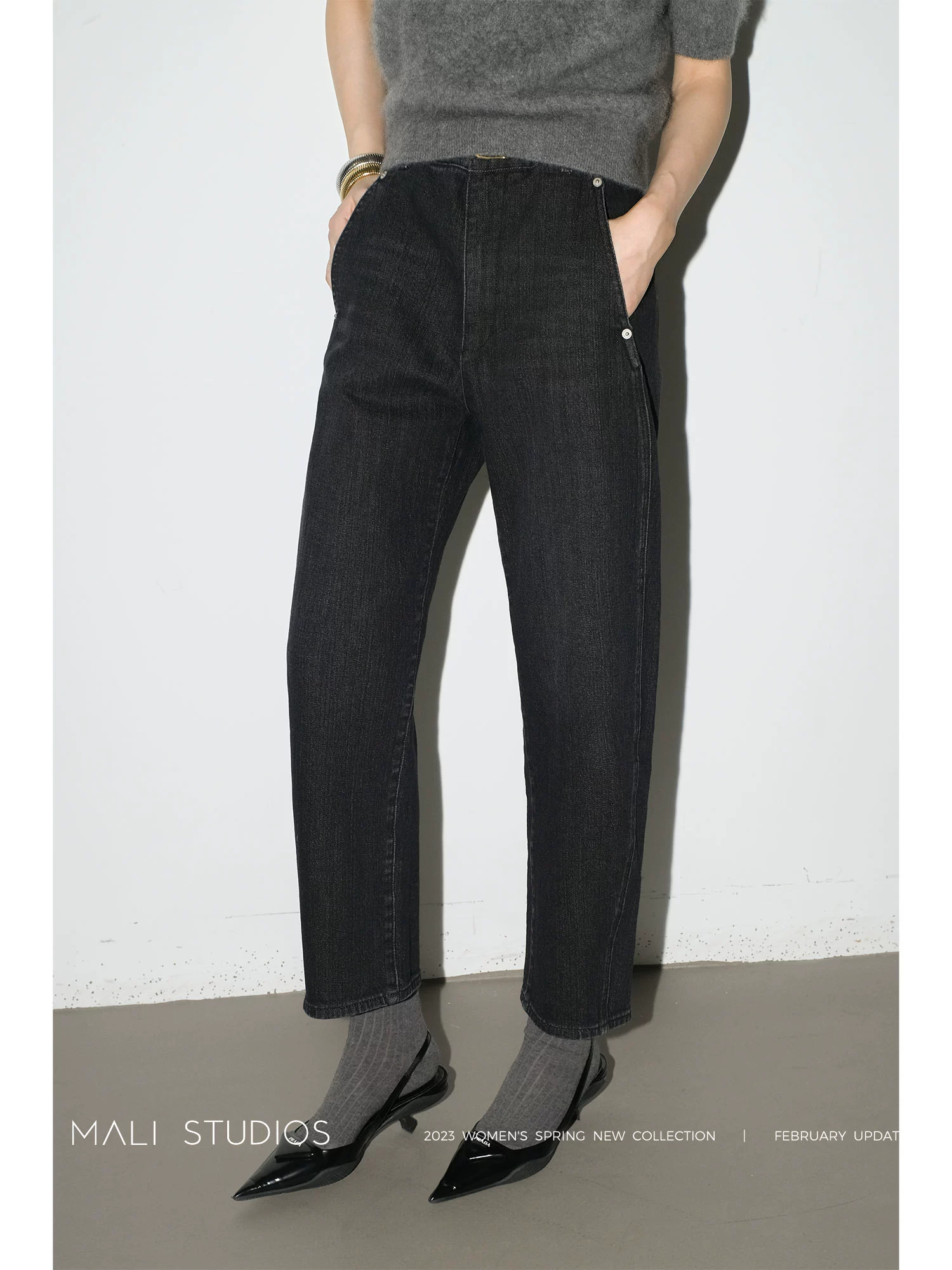 MALI|博主同款_水洗特殊圆弧扭缝设计显瘦遮肉九分牛仔裤