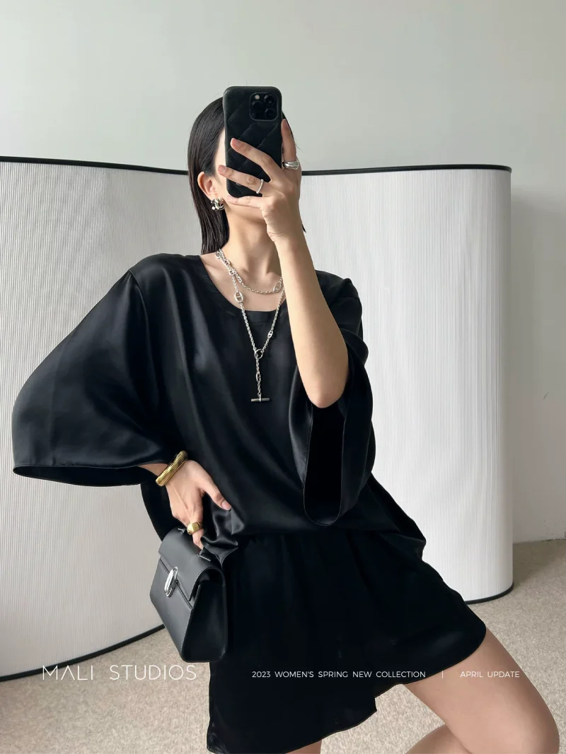 MALI|夏日醋酸缎面_及简舒适懒人套装七分袖上衣短裤