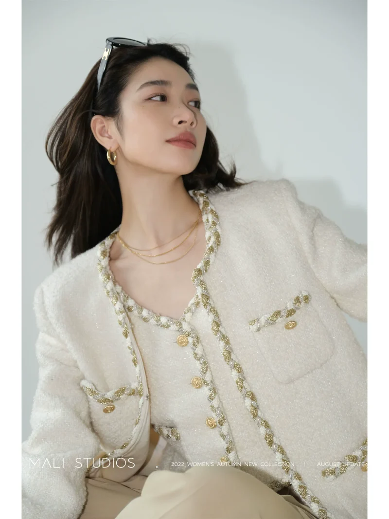 MALI|定制羊毛圈圈纱粗花呢|纯手工编织带小香风三件套
