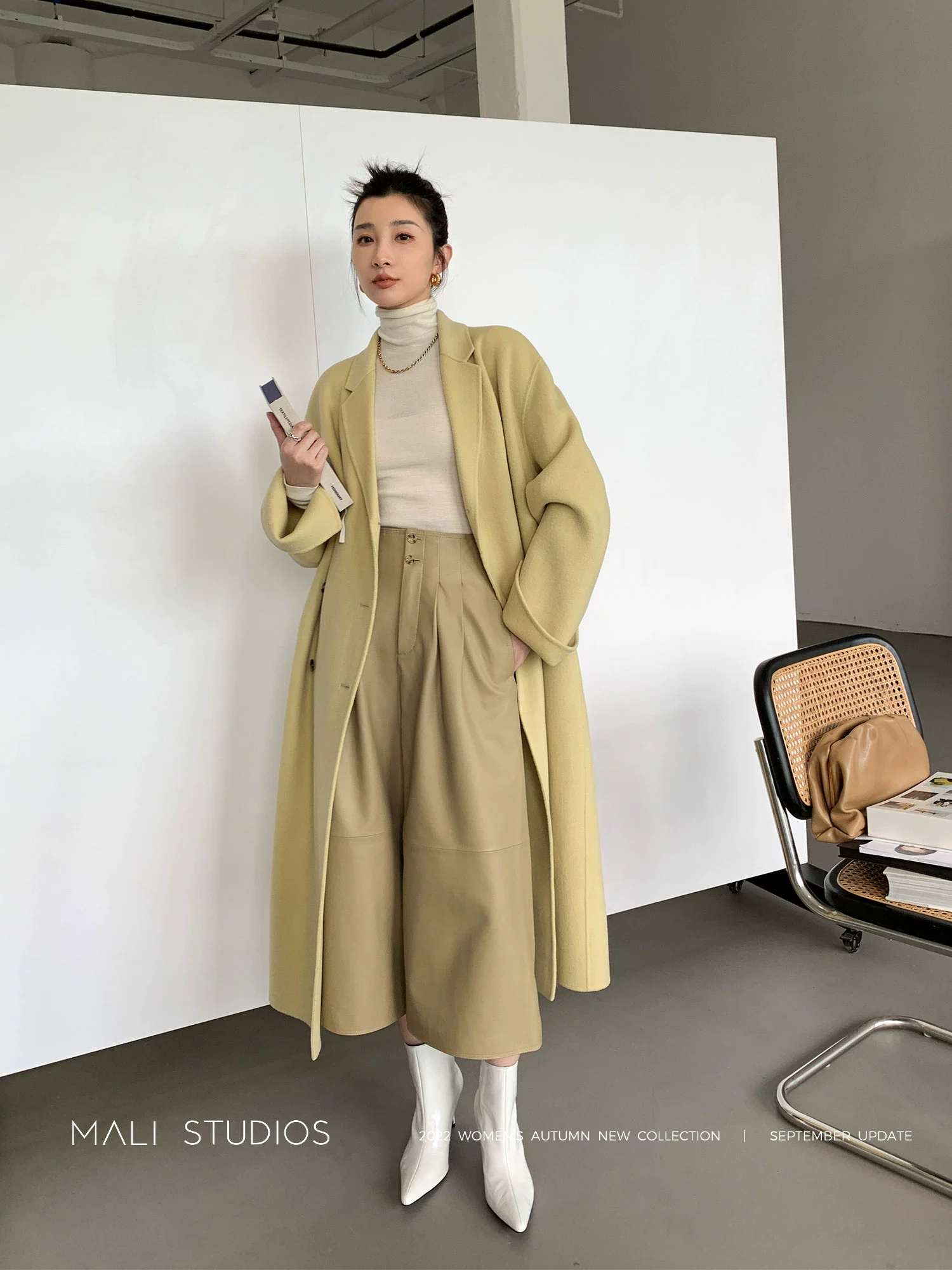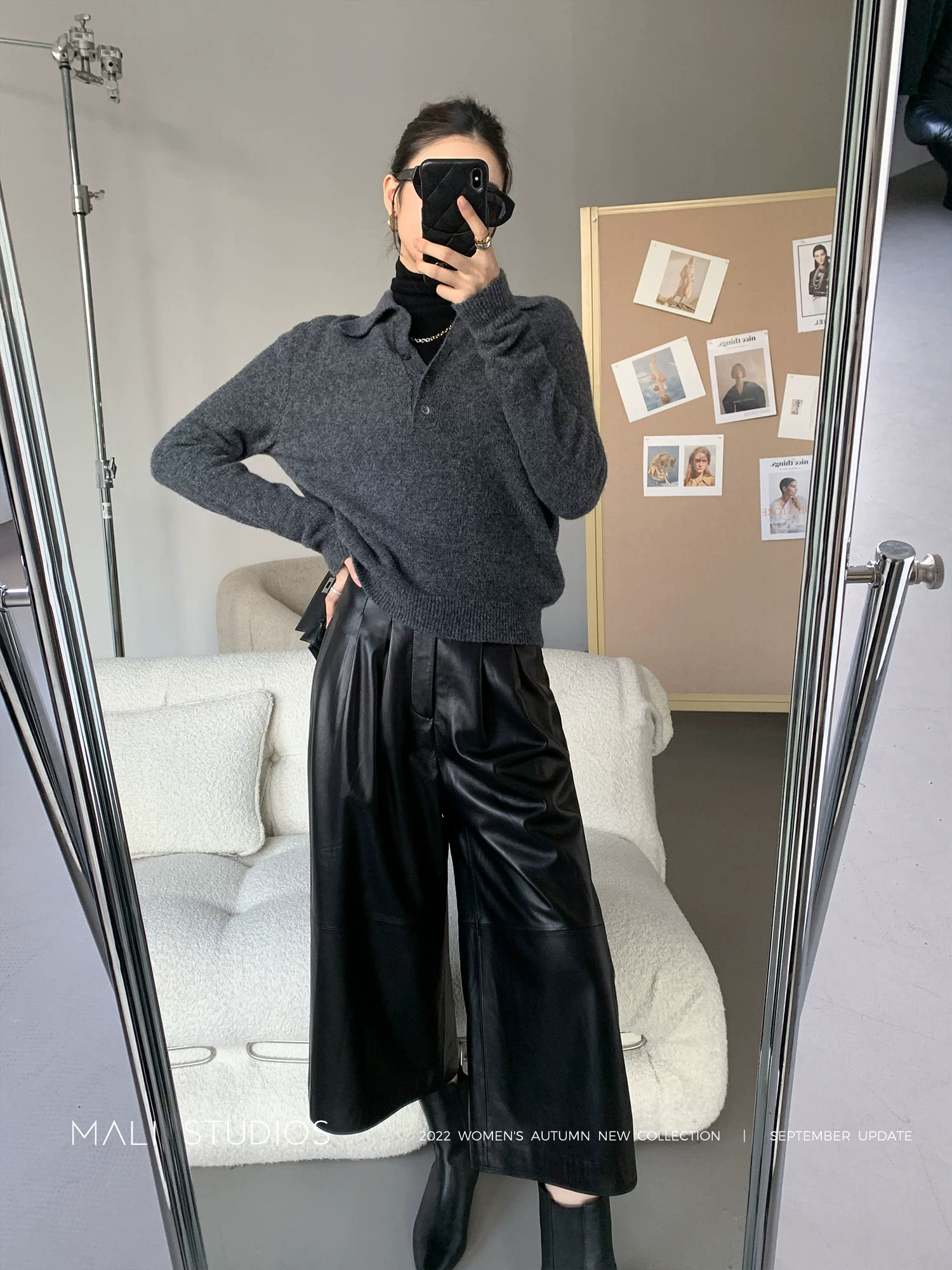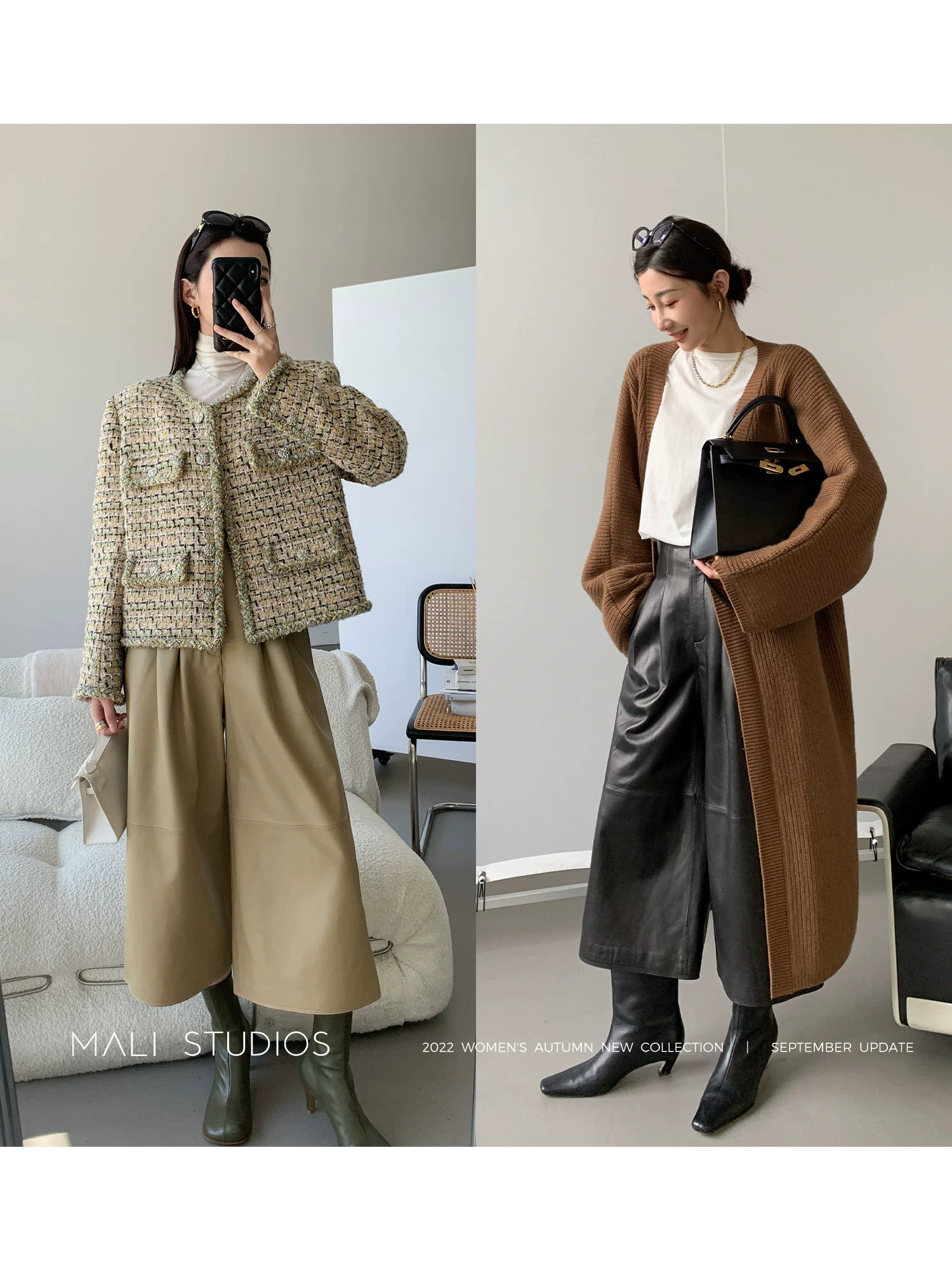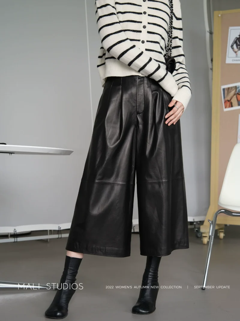 MALI|定制A及无涂层绵羊皮|INS风显瘦利器阔腿八分皮裤