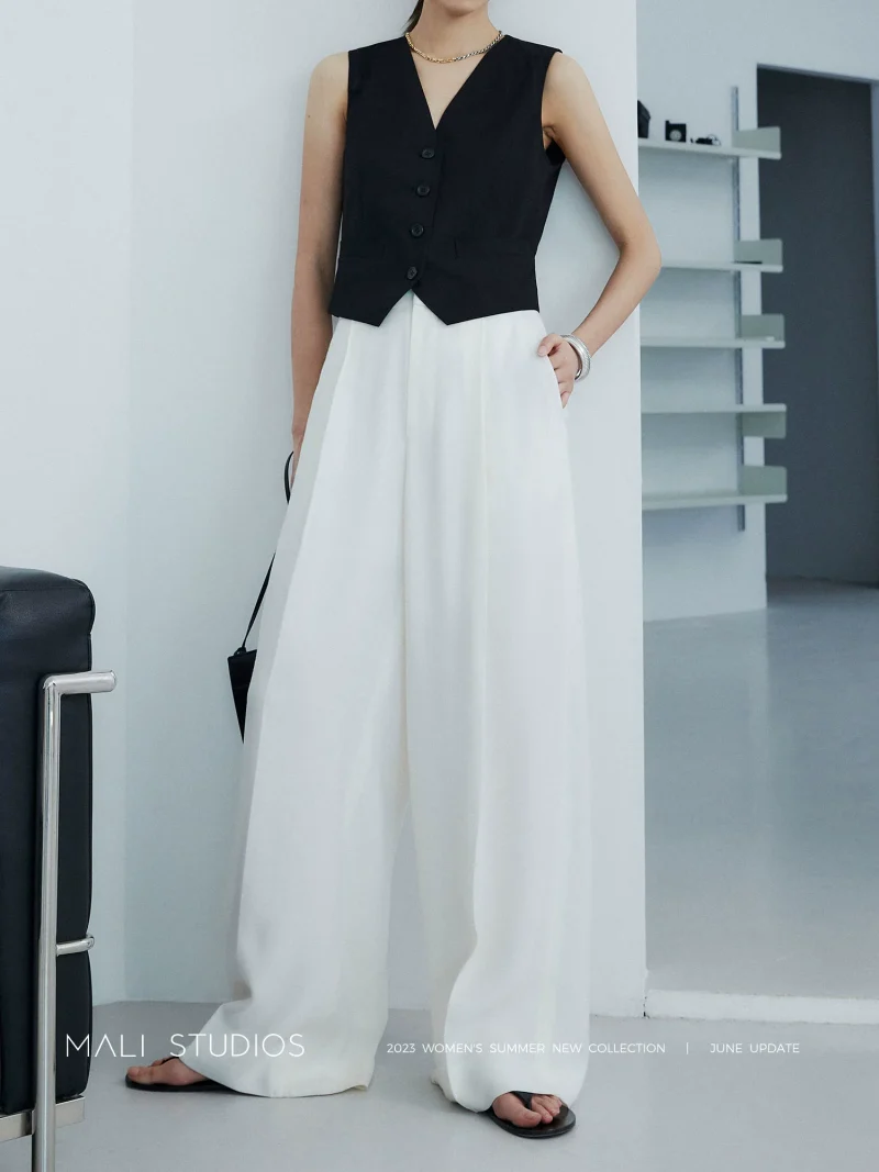 MALI|定制Viscose羊毛亚麻混纺_夏日干爽舒适随性阔腿裤