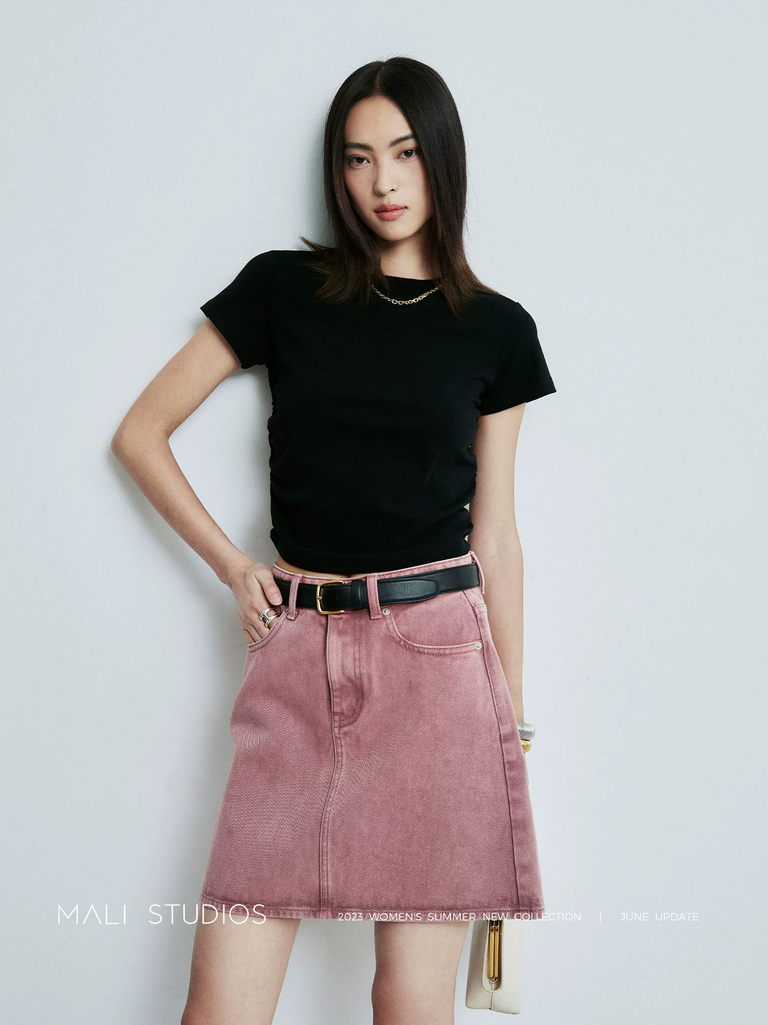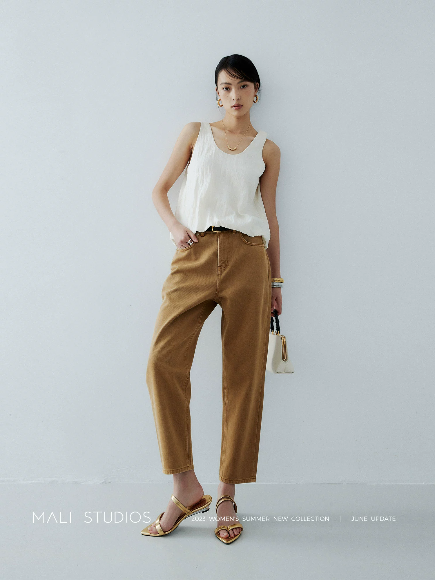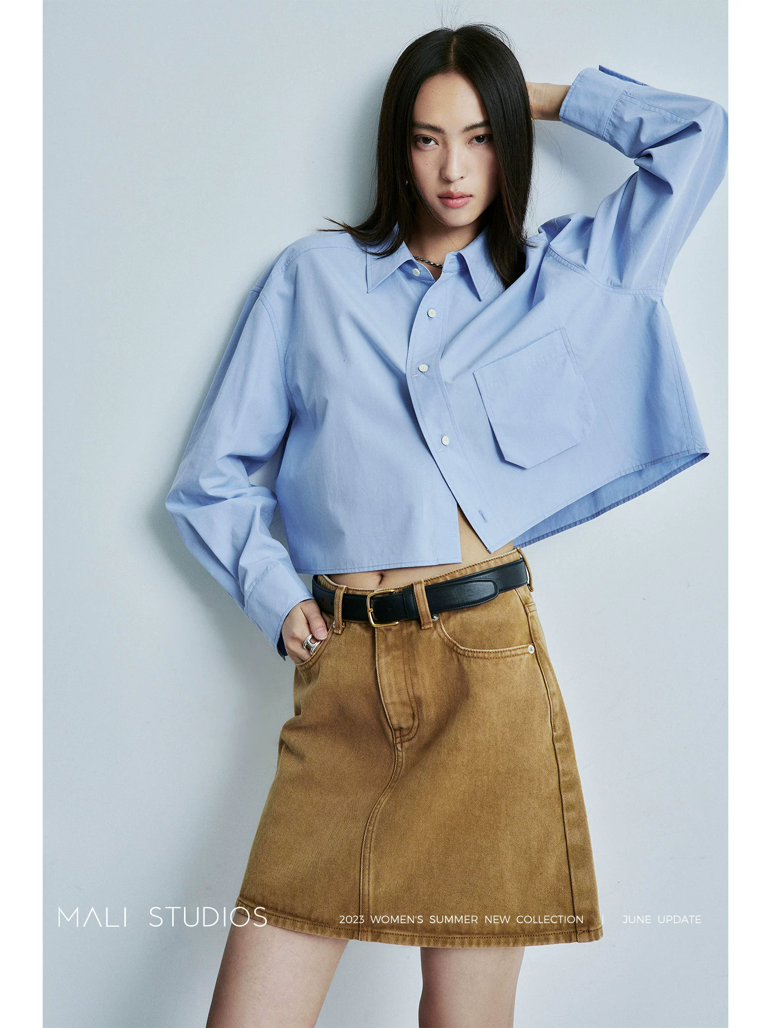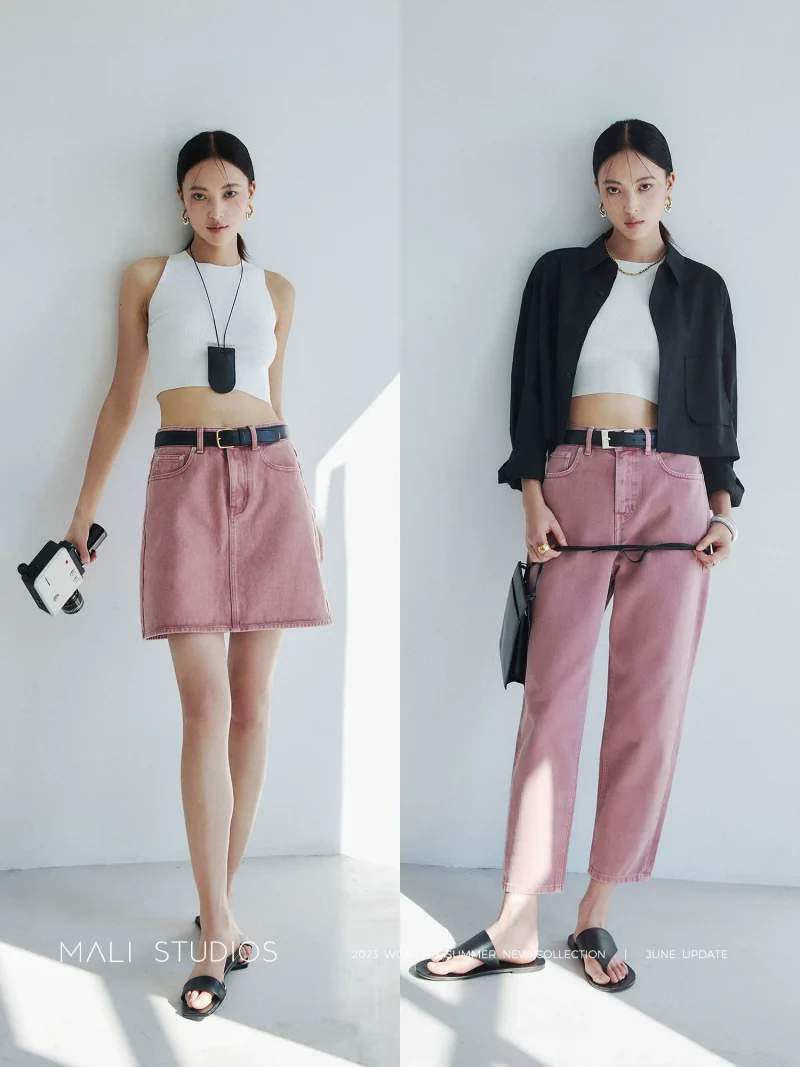 MALI|定染彩牛品质全棉_复古休闲小A字牛仔裙微锥九分牛仔裤
