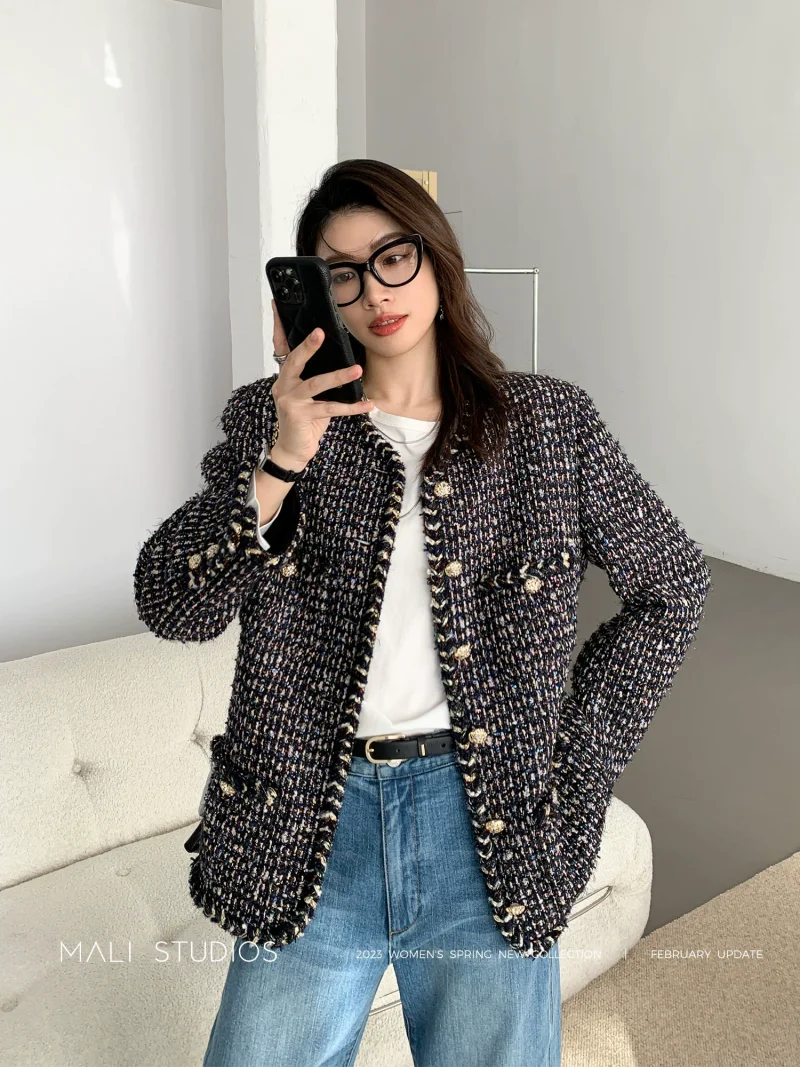 Be the first to review “MALI|意大利进口黑白香香&缤纷落日彩色珠片纱高定小香外套”