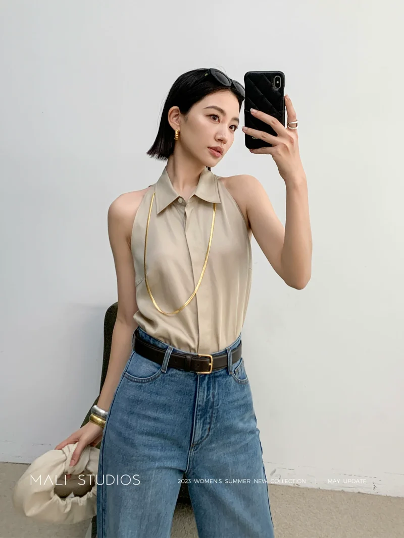 Be the first to review “MALI|清凉天丝亚麻_法式复古尖领小众气质无袖衬衫”
