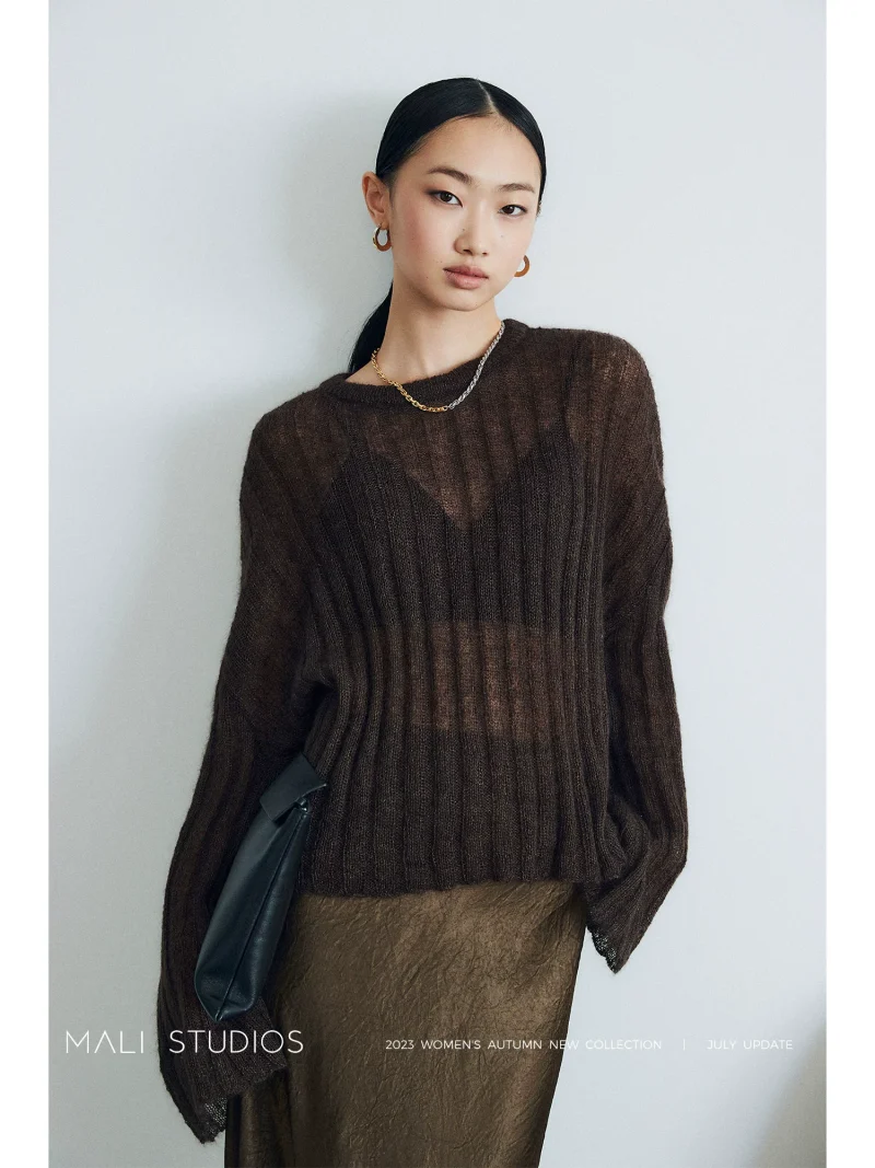 Be the first to review “MALI|真丝南非马海毛纱线_时髦慵懒透视宽松喇叭袖毛衣”