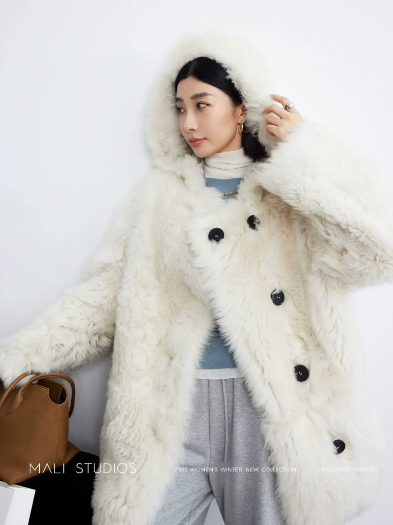 MALI|“经典大白熊系列”_进口托斯卡纳半卷系列连帽短/中长皮草