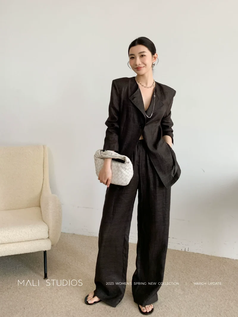 MALI|自然空气感苎麻_超薄透气防晒西装外套/休闲长裤套装