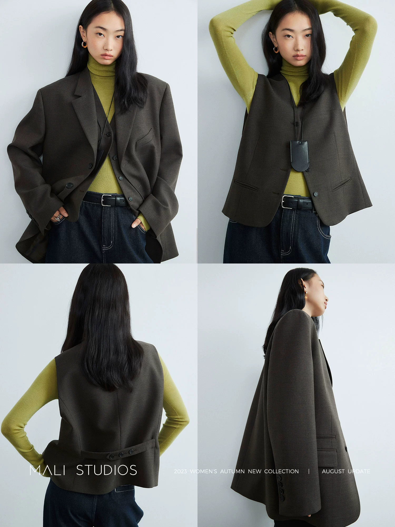 MALI|超A博主风意大利色织格纹精纺羊毛VTG叠穿经典老钱马甲西装