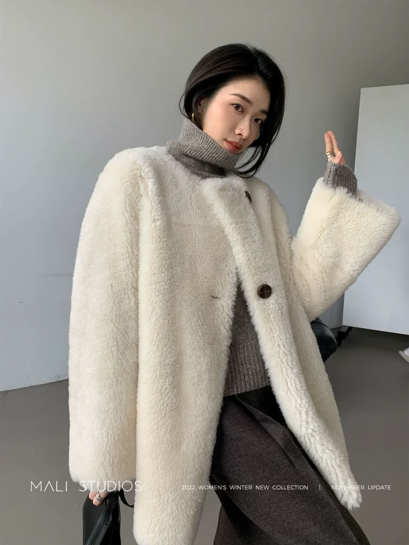 MALI|进口冰岛羊毛_高级拼裘工艺斜门襟皮草外套
