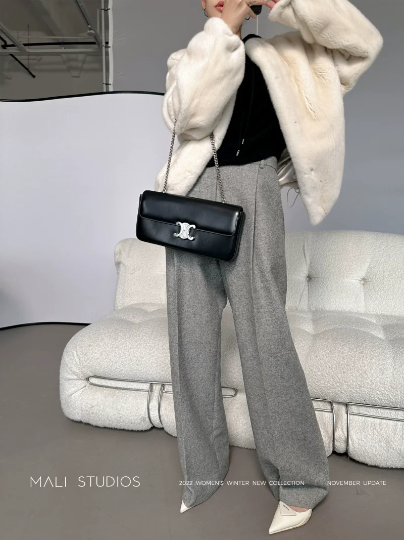 MALI|韩国进口全羊毛/高端羊毛_御寒遮肉立体压褶阔腿裤