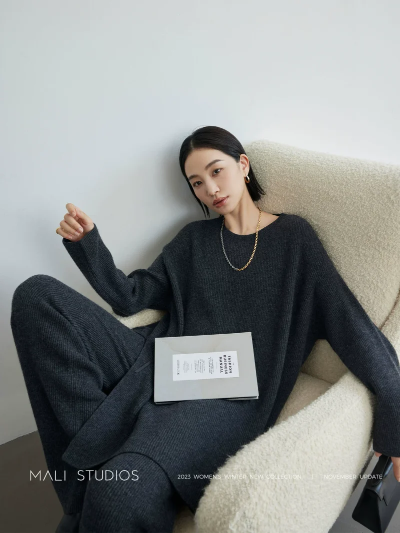 Be the first to review “MALI|高克重加厚羊绒羊毛_时髦慵懒黄金开叉極简坑条纸片人套装”