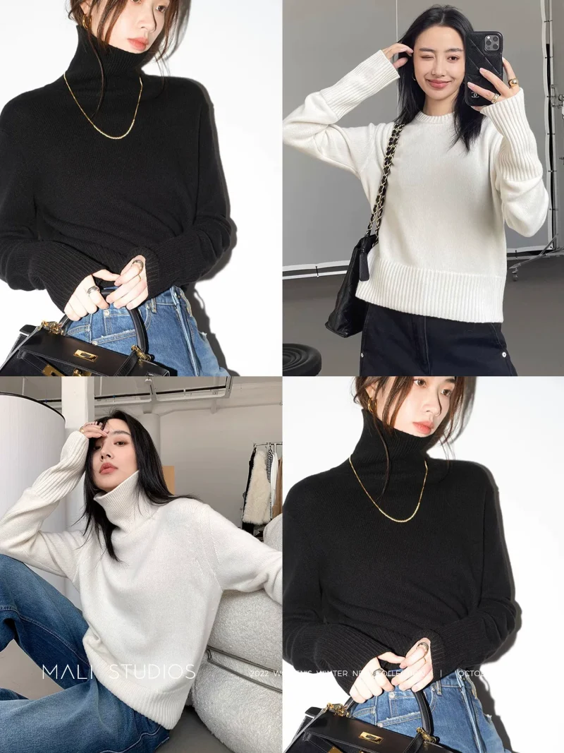 MALI|高端混色山羊绒/羊毛/羊绒纱 慵懒随性高领圆领廓形毛衣
