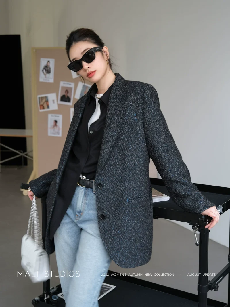 MALI|高级定制花式混色粗纺羊毛|经典复古廓形西装