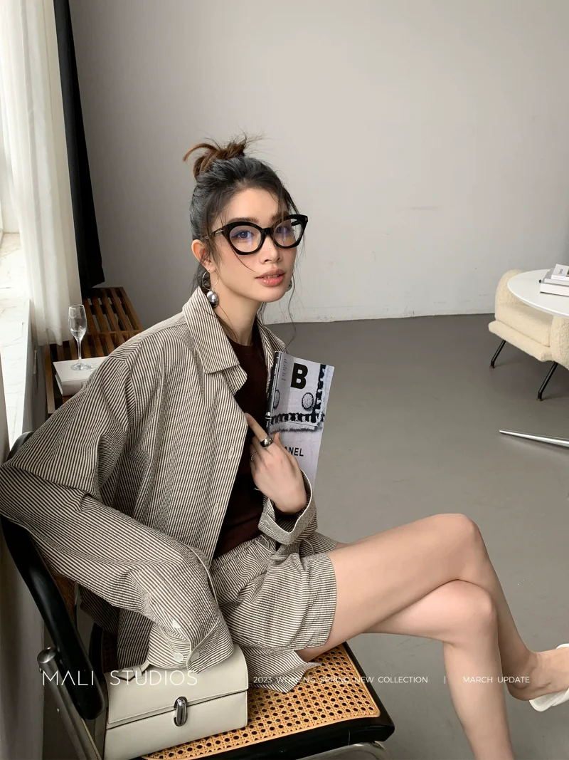 Be the first to review “MALI|高级感条纹泡泡纱肌理_春夏BF风宽松廓形衬衫短裤套装”