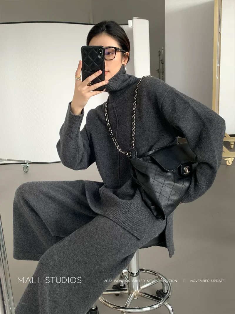 Be the first to review “MALI|INS博主同款_高端全羊毛立领毛衣+阔腿九分裤两件套”