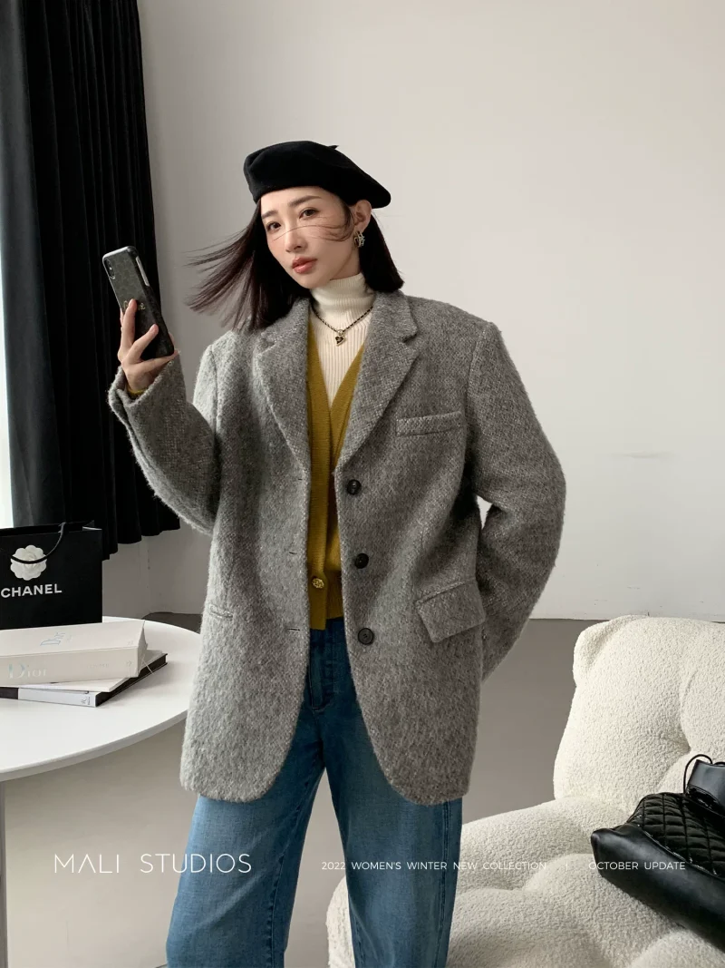 MALI|VTG夹花混色加厚毛呢 经典直身西装/西装式大衣