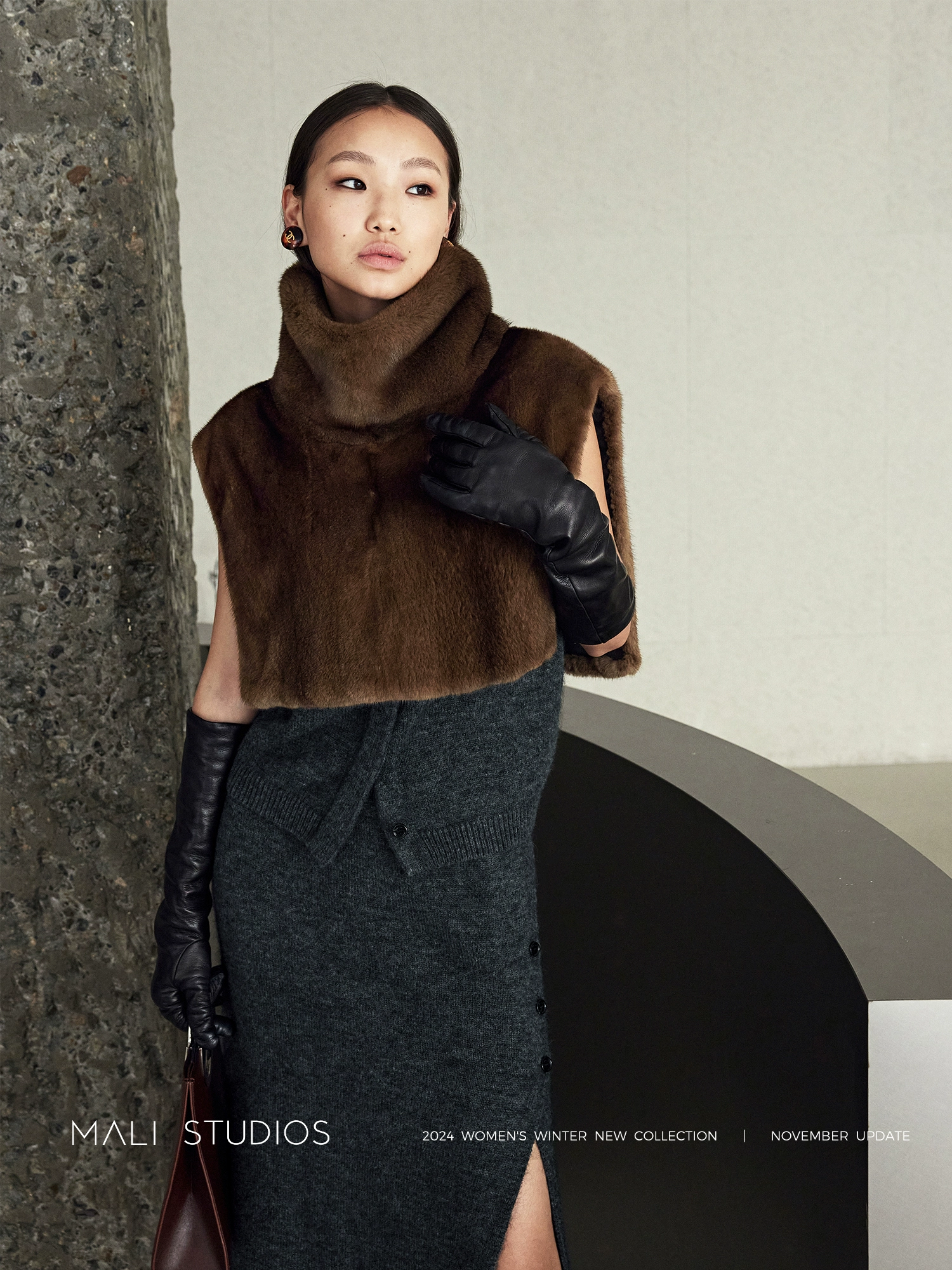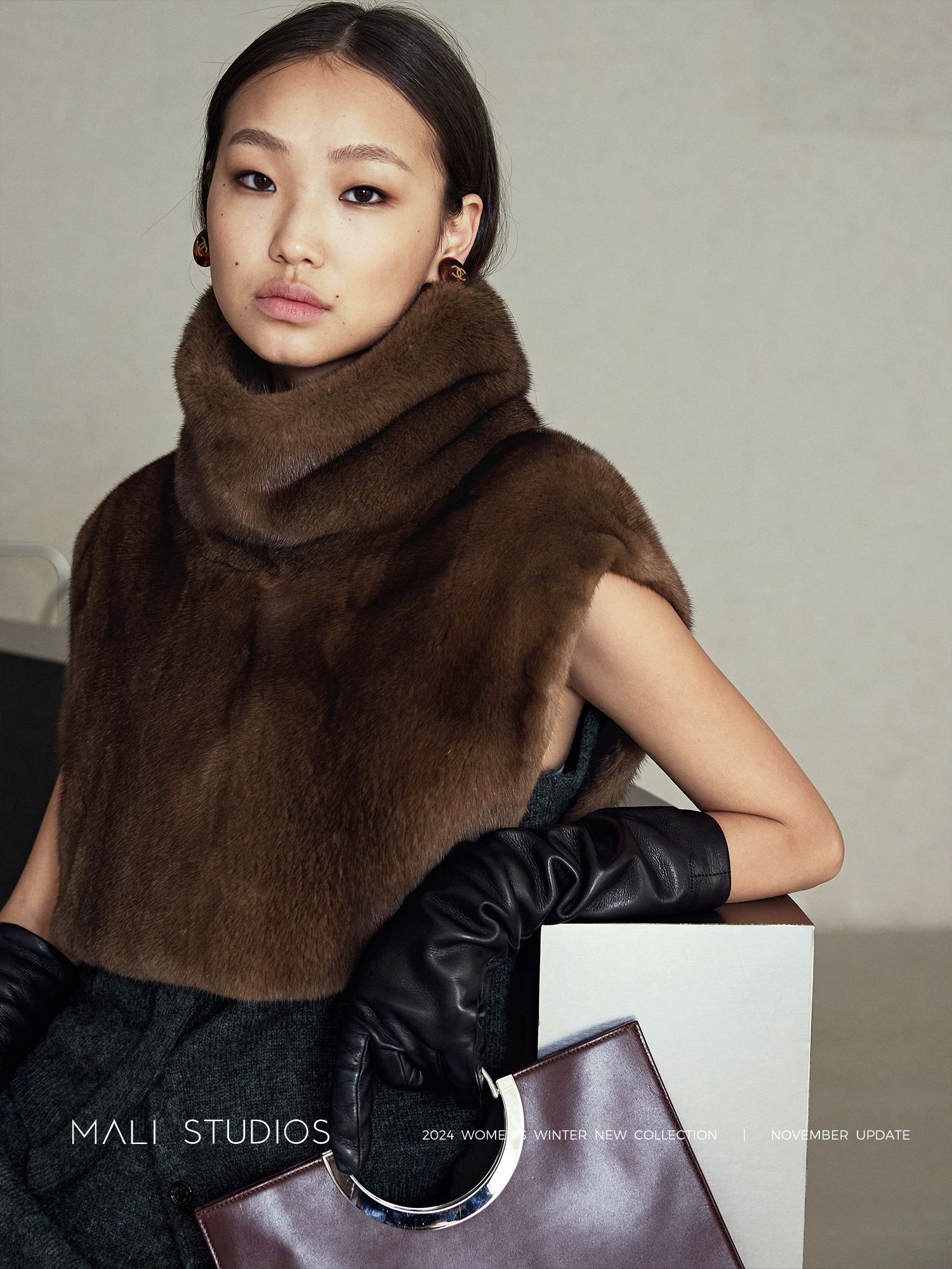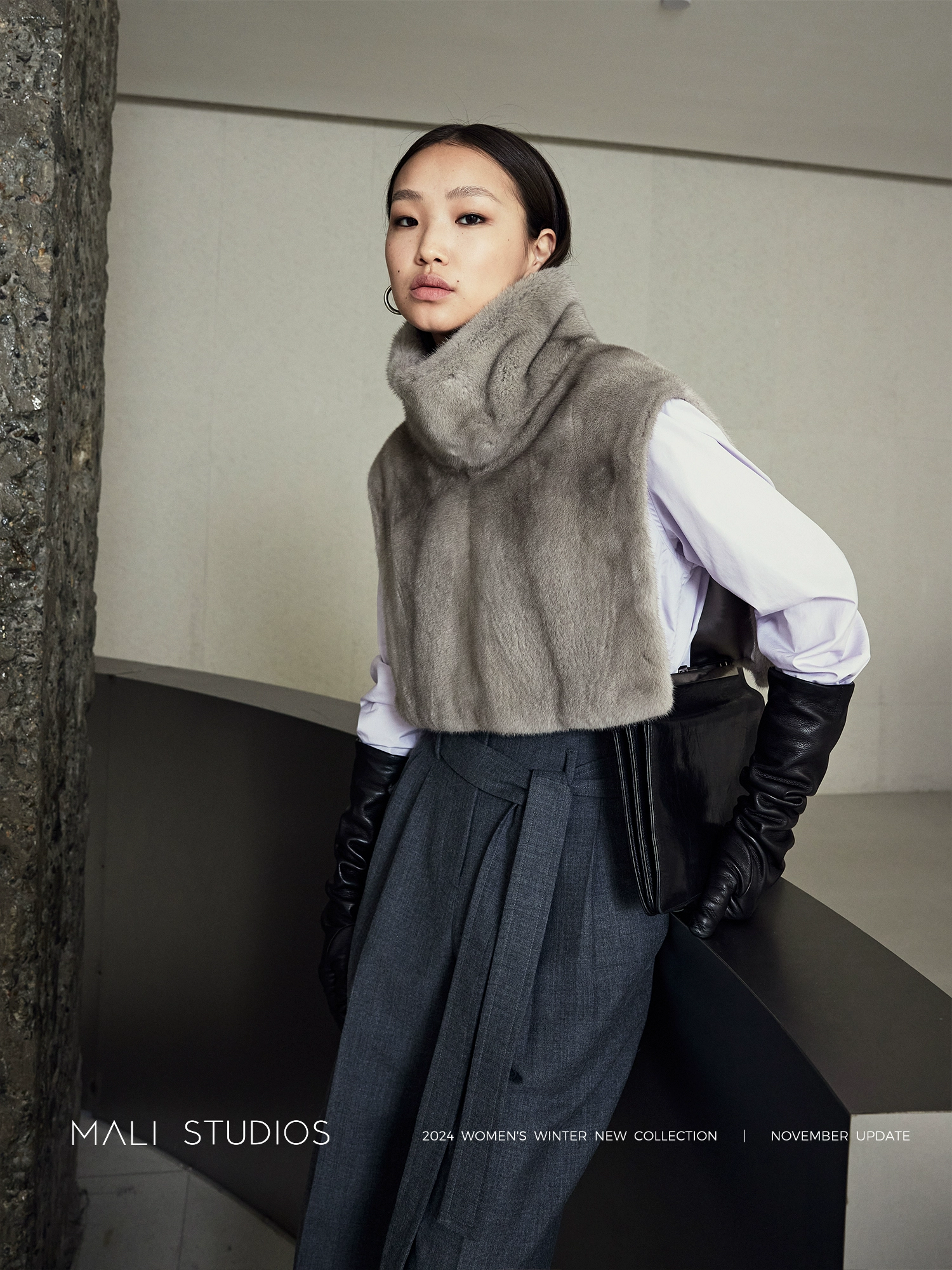 MALI | 丹麦进口天鹅绒叠穿风高领水貂马甲披肩