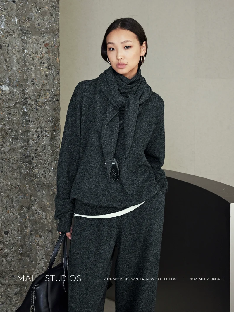 MALI | 慵懒随性羊绒羊毛圆领毛衣/卫裤/三角披肩三件套